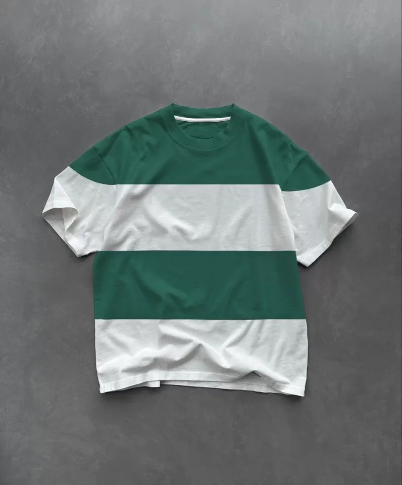 Unisex Bisiklet Yaka Parçalı T-Shirt – Yeşil