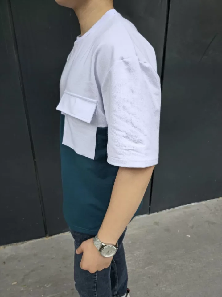 Unisex Torba Cep Detaylı Parçalı T-Shirt – Lacivert