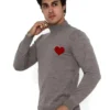 Unisex Yarım Boğazlı Baskılı Dokuma Triko – Bej