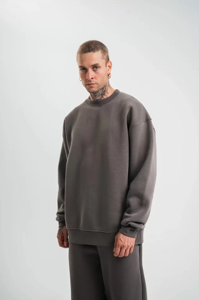 Uzun Kol Bisiklet Yaka Basic SweatShirt – Füme
