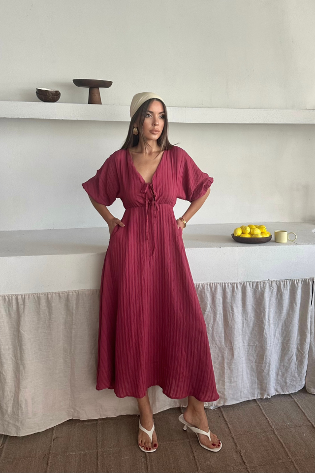 V YAKA DÖKÜMLÜ ELBİSE – Pembe