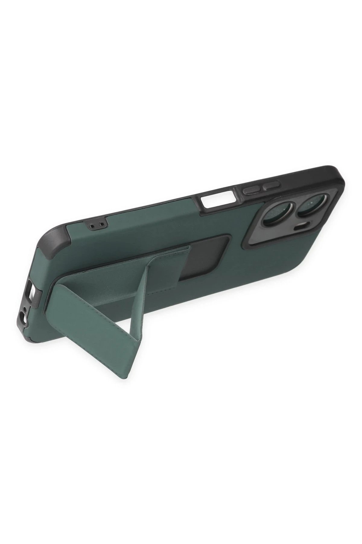 iPhone 12 Kılıf Coco Deri Standlı Kapak - Yeşil-(5796)