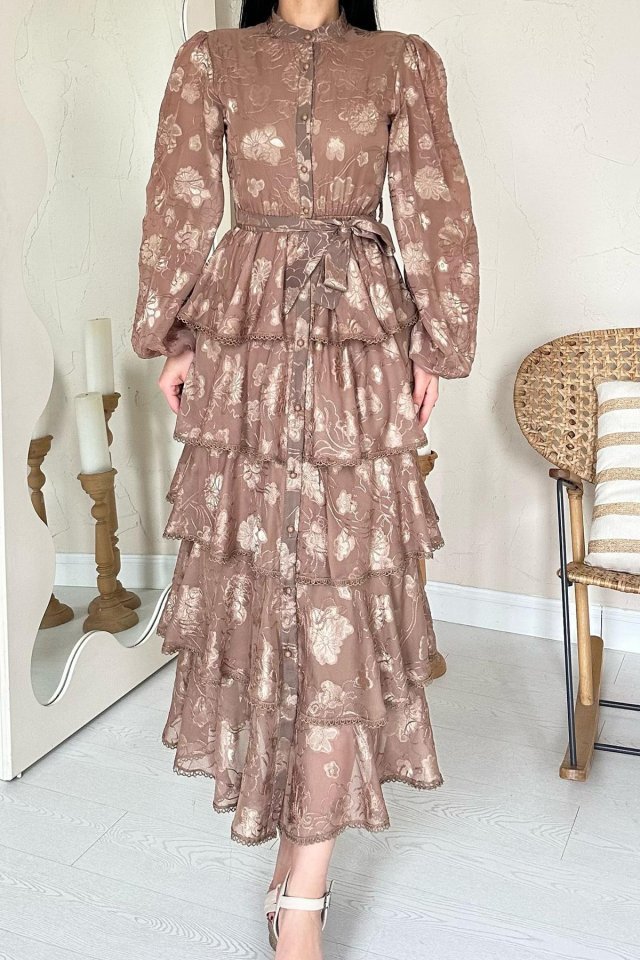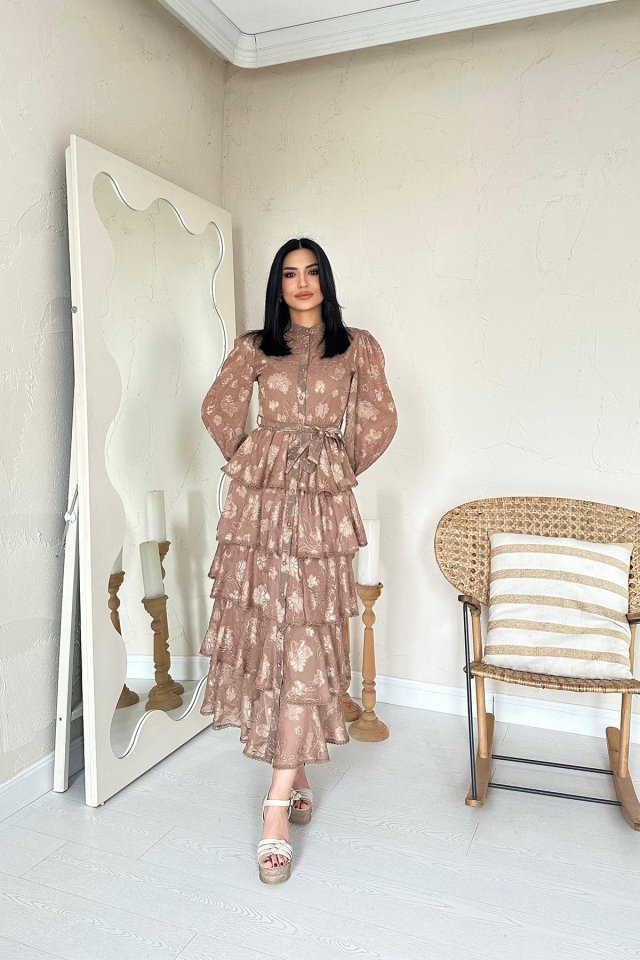 Vizon Valonlu Şeritli Kat Kat Elbise