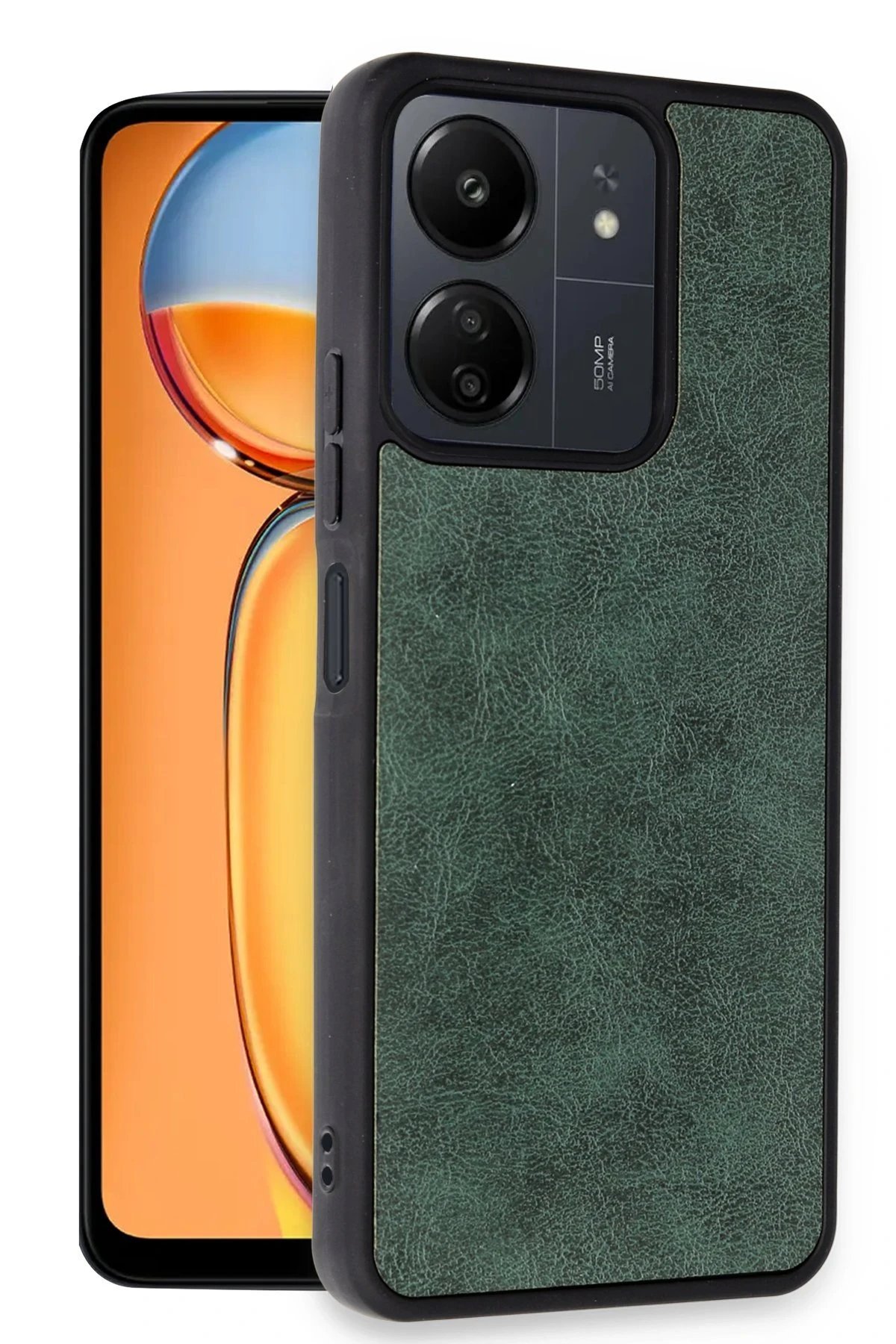 Xiaomi Redmi 13C Kılıf Aras Deri Kapak – Koyu Yeşil-(5796)