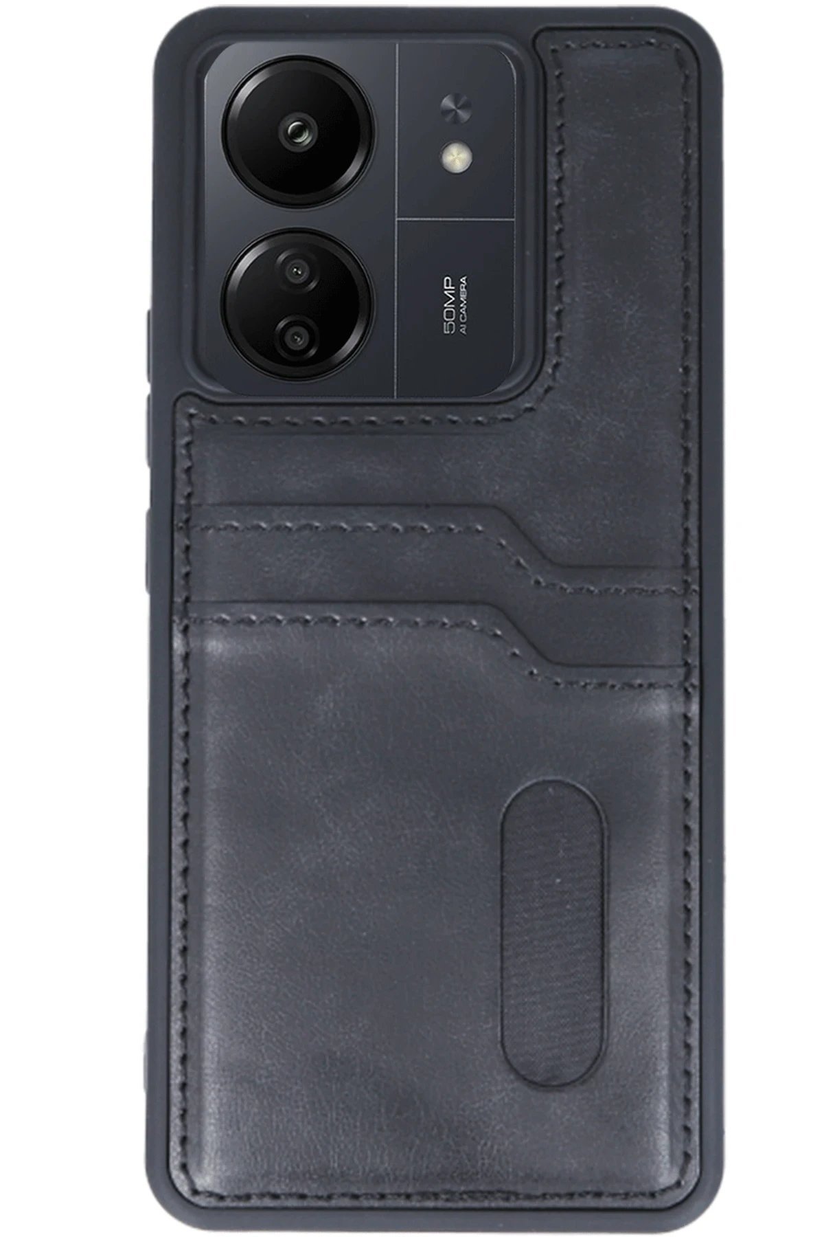 Xiaomi Redmi 13C Kılıf Sara Kartvizitli Deri Kılıf – Siyah-(5796)