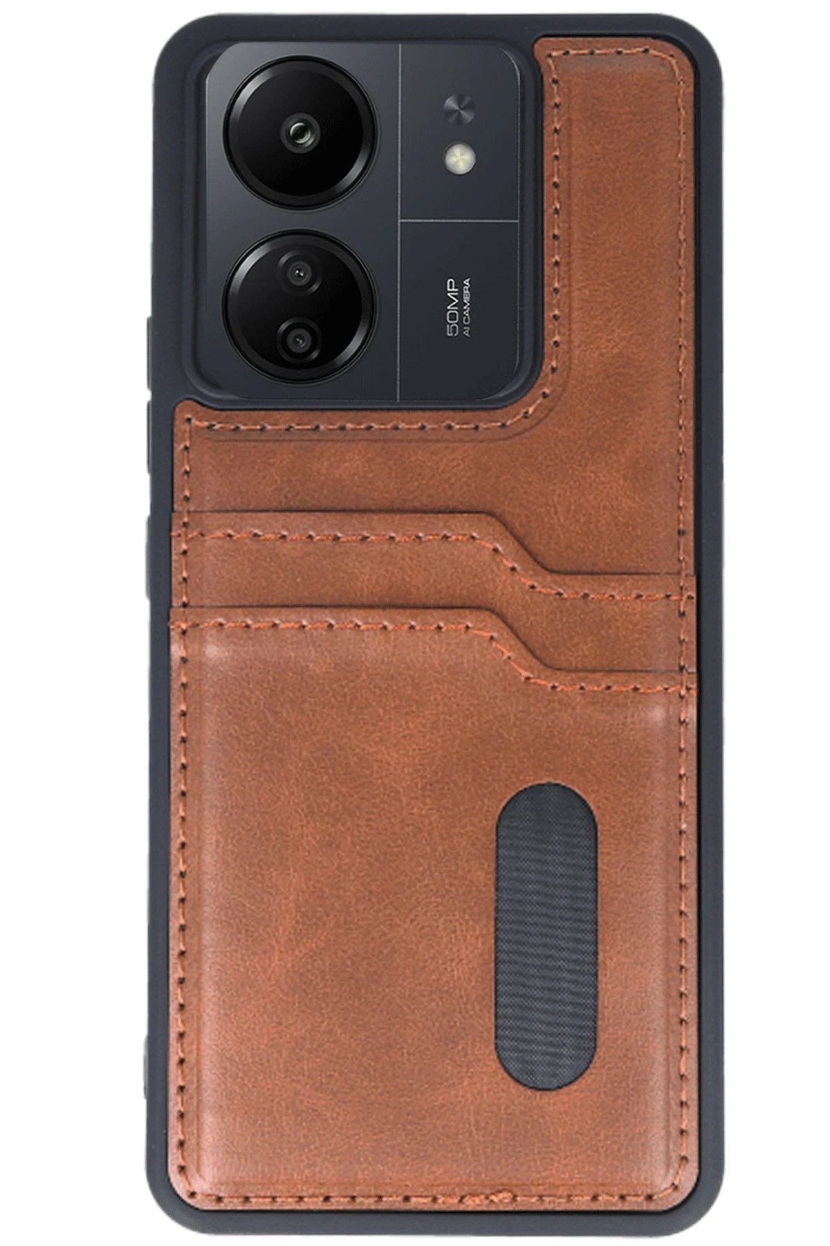 Xiaomi Redmi 13C Kılıf Sara Kartvizitli Deri Kılıf – Taba-(5796)