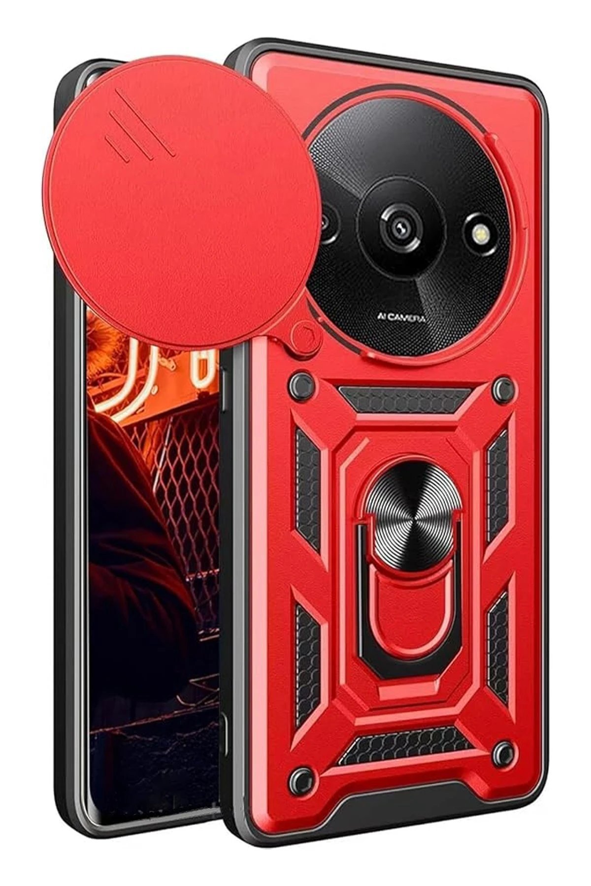 Xiaomi Redmi A3 4G Kılıf Pars Lens Yüzüklü Silikon – Kırmızı-(5796)