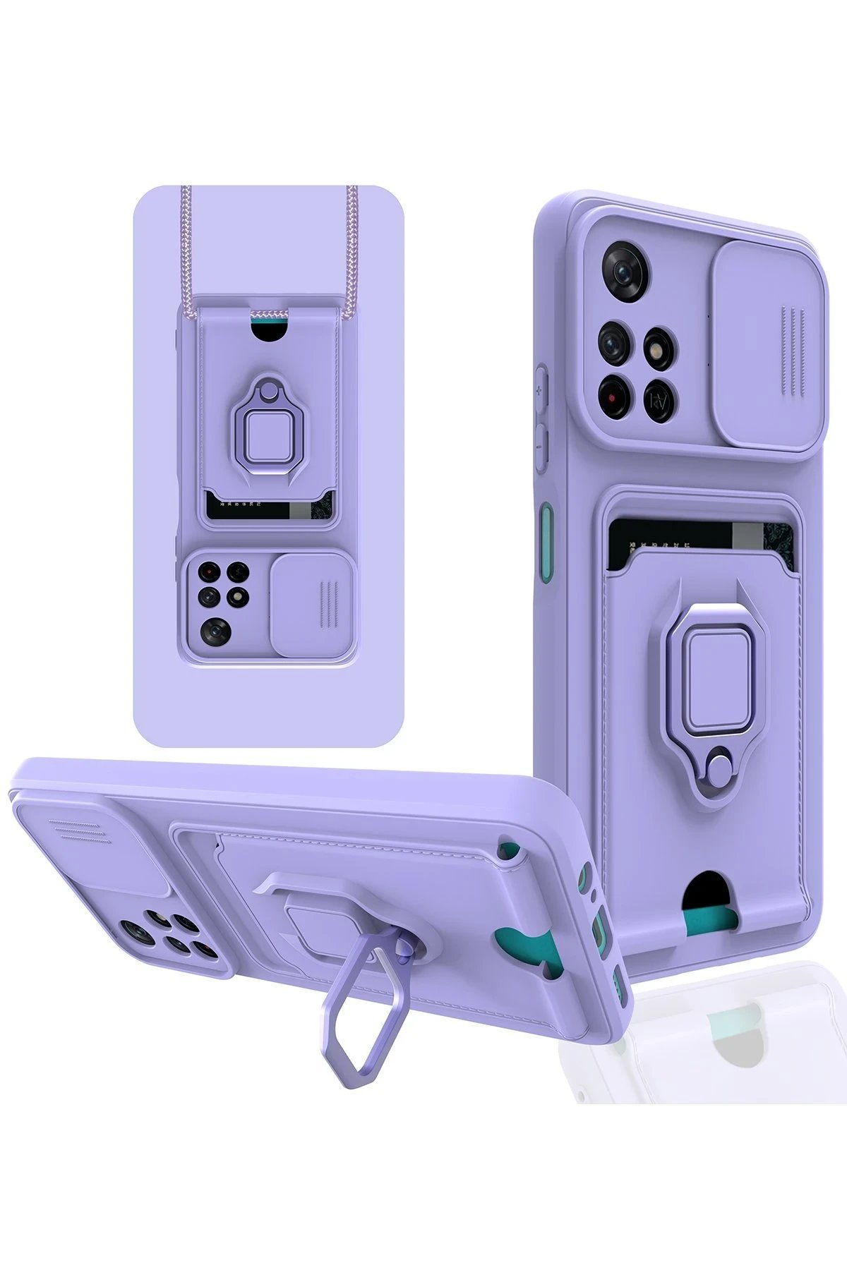Xiaomi Redmi Note 11T Kılıf Zuma Kartvizitli Yüzüklü Silikon – Lila-(5796)