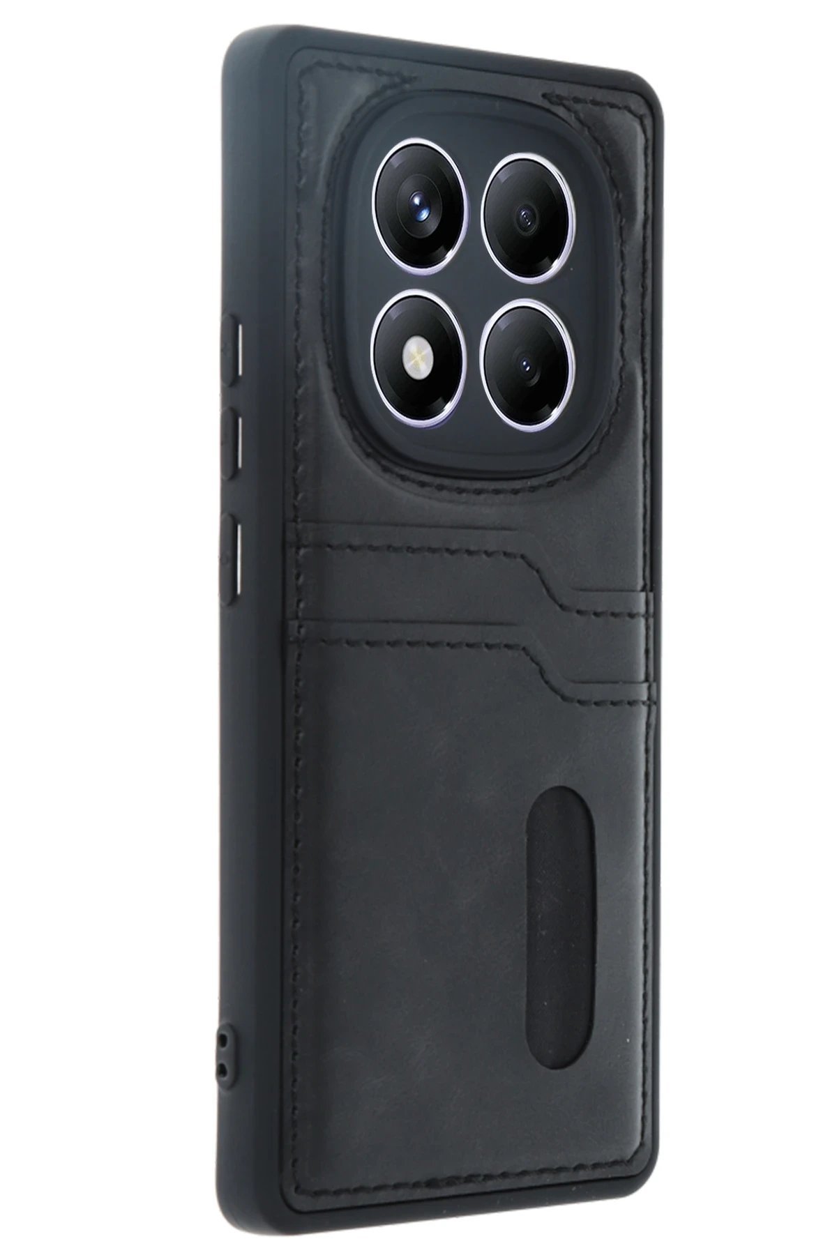 Xiaomi Redmi Note 14 Pro 5G Kılıf Sara Kartvizitli Deri Kılıf - Siyah-(5796)