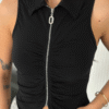 Yakalı Tam Fermuarlı Kolsuz Bluz – Bordo