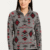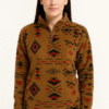 Yarım Fermuarlı Desenli Polar Sweat Tribal Etnik Desen Yakalı, Uzun Kollu, Oversize Rahat Kalıp – Füme