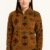 Yarım Fermuarlı Desenli Polar Sweat Tribal Etnik Desen Yakalı, Uzun Kollu, Oversize Rahat Kalıp – Kahverengi