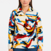 Yarım Fermuarlı Desenli Polar Sweat Tribal Etnik Desen Yakalı, Uzun Kollu, Oversize Rahat Kalıp – Siyah