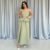 Yeşil Beli Büzgülü İnci Askılı Uzun Elbise