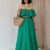 Yeşil Omzu Lastikli Brode Elbise