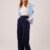 Yüksek Bel Bol Paça Krep Lacivert Pantolon