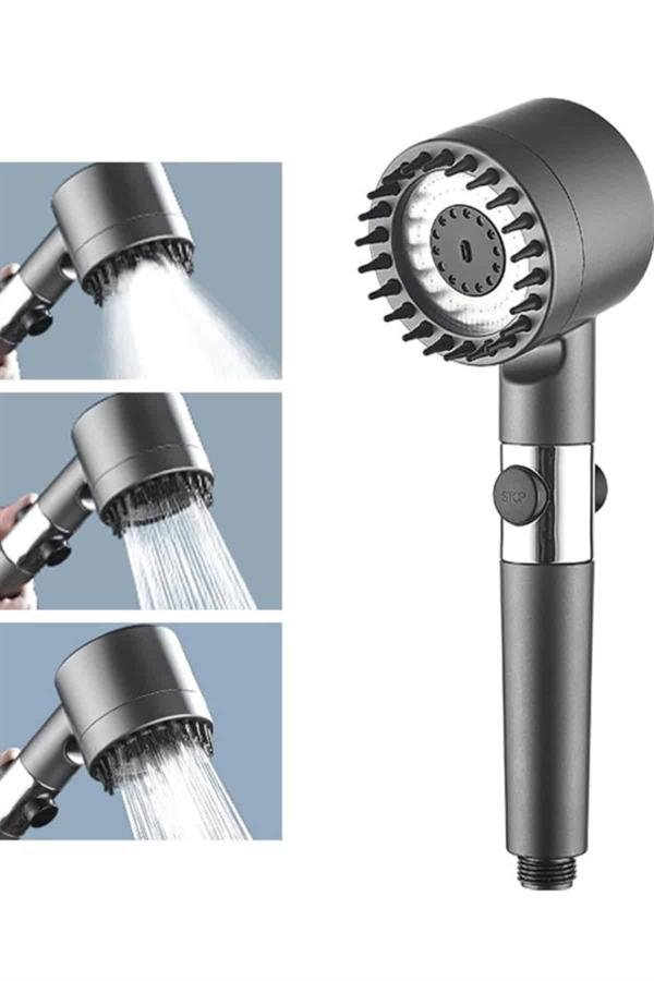 Krom kaplama malzemesiyle üretilmiş olan bu duş başlığı, hem estetik görünümüyle banyonuza şıklık katarken hem de uzun ömürlü ve dayanıklı bir kullanım sunar. Paslanmaya karşı dirençli yapısı sayesinde ilk günkü parlaklığını uzun süre korur ve günlük kullanımda yüksek performans sağlar. Üç farklı masaj modu sayesinde duş keyfinizi bambaşka bir seviyeye taşıyan bu ürün; rahatlatıcı, canlandırıcı ve derin doku masajı seçenekleriyle kişisel konforunuzu ön plana çıkarır. Günün stresini üzerinizden atmak veya güne zinde başlamak için ihtiyacınıza göre kolayca modlar arasında geçiş yapabilirsiniz.Kullanıcı dostu tasarımı sayesinde kurulumu oldukça basittir; ekstra bir ekipmana gerek kalmadan dakikalar içinde monte edilebilir. Ergonomik tutuşu ve su tasarrufu sağlayan yapısıyla hem çevre dostu hem de ekonomik bir kullanım sunar. Pratik kullanımı sayesinde her banyoya kolaylıkla entegre edilebilen bu duş başlığı, fonksiyonel ve şık bir banyo aksesuarı arayanlar için ideal bir seçimdir.